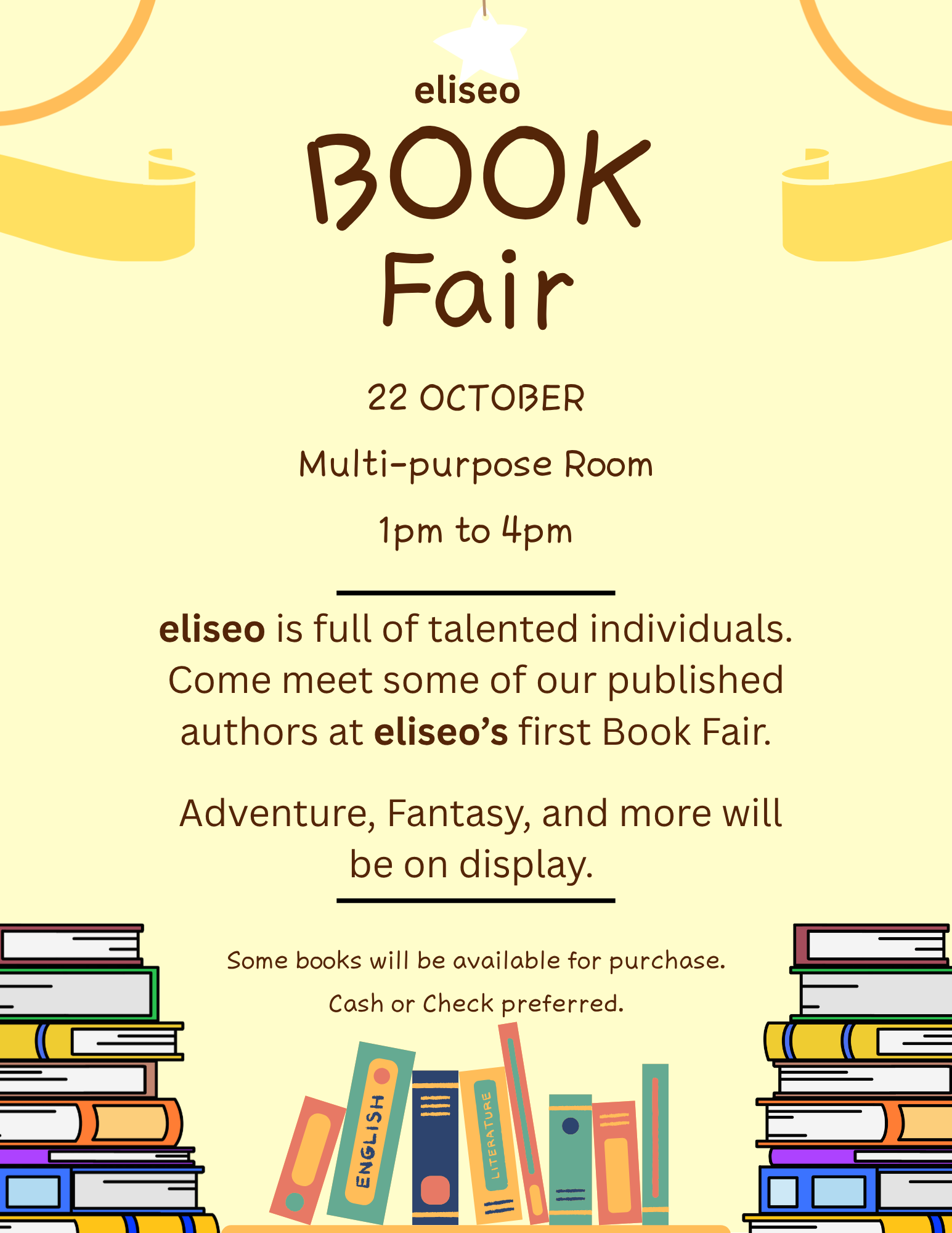 Step into a world of imagination, inspiration, and intellect at eliseo’s first-ever Book Fair on October 22, from 1–4 PM in the Multi-purpose Room. Meet an exciting lineup of publishedMore